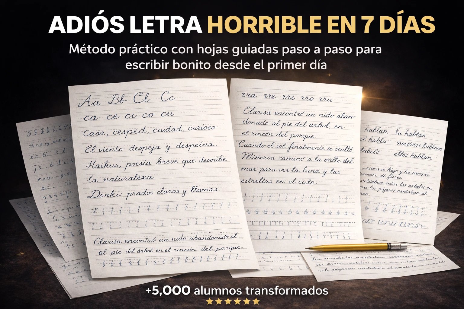 Domina cada letra del abecedario con ejercicios guiados y frases reales. Un método simple para transformar tu letra y escribir bonito desde el primer día.a Paso (De A a Z)